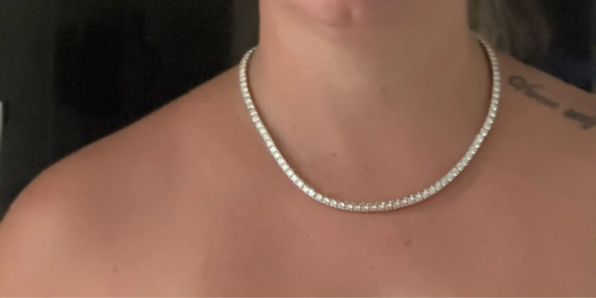 This CollJewelry exclusive 4MM Moissanite Tennis Chains is made from 925 sterling silver.