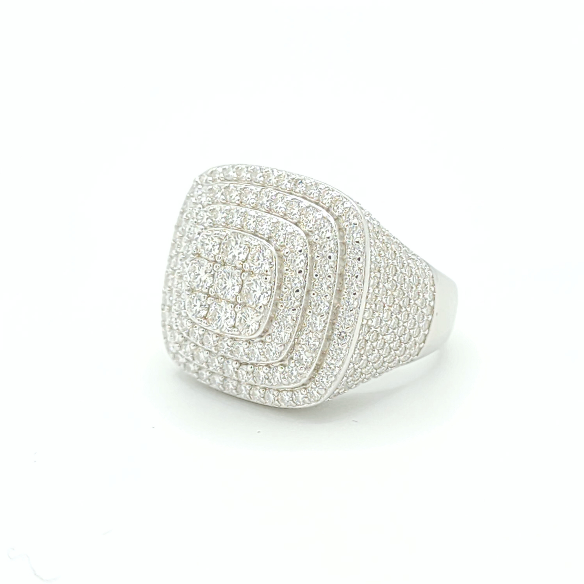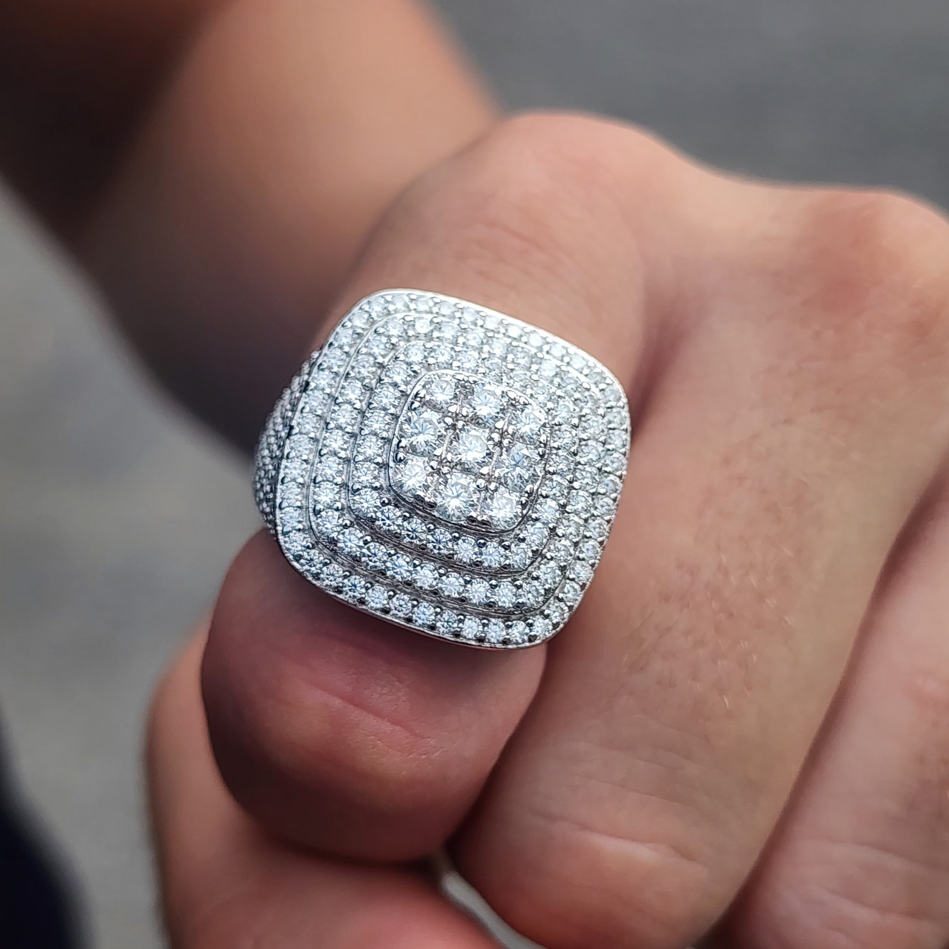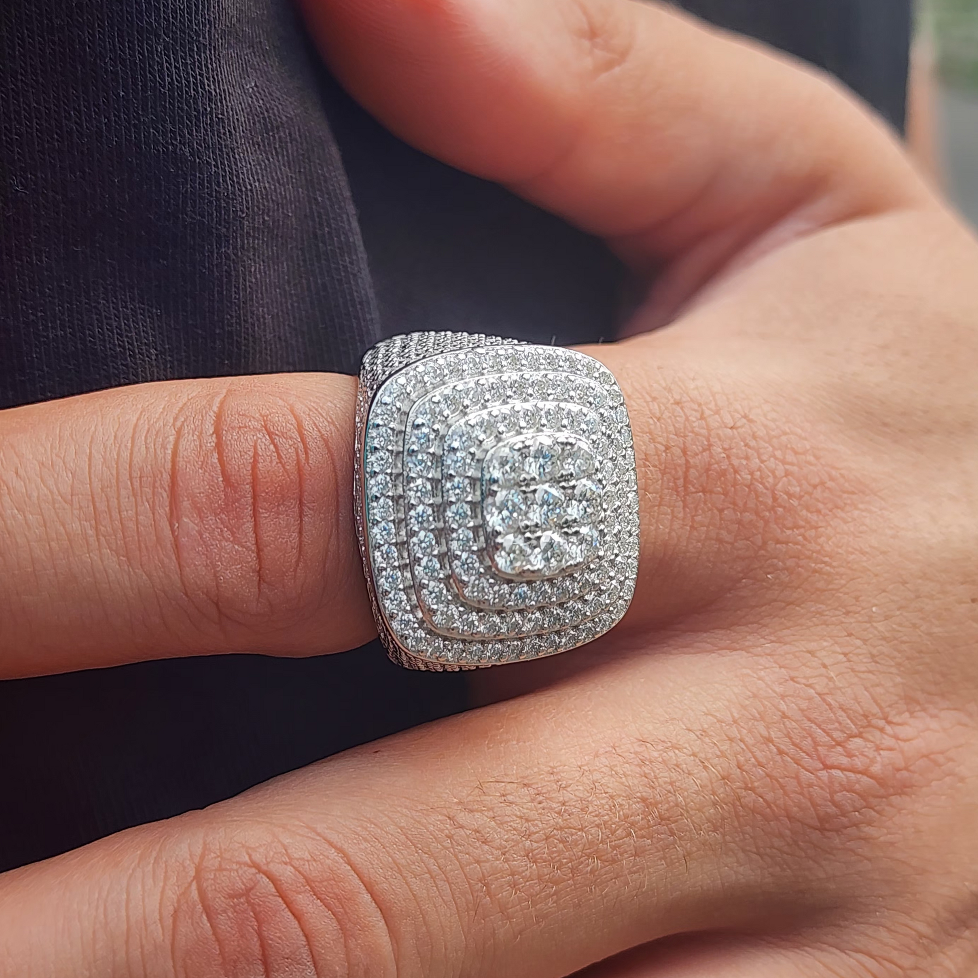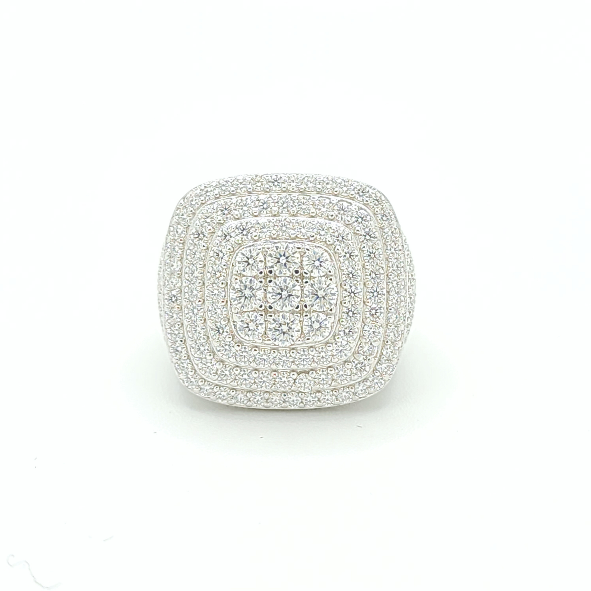 CollJewelry exclusive Moissanite Triple Halo Pavé Ring is now available, made of 925 sterling silver.