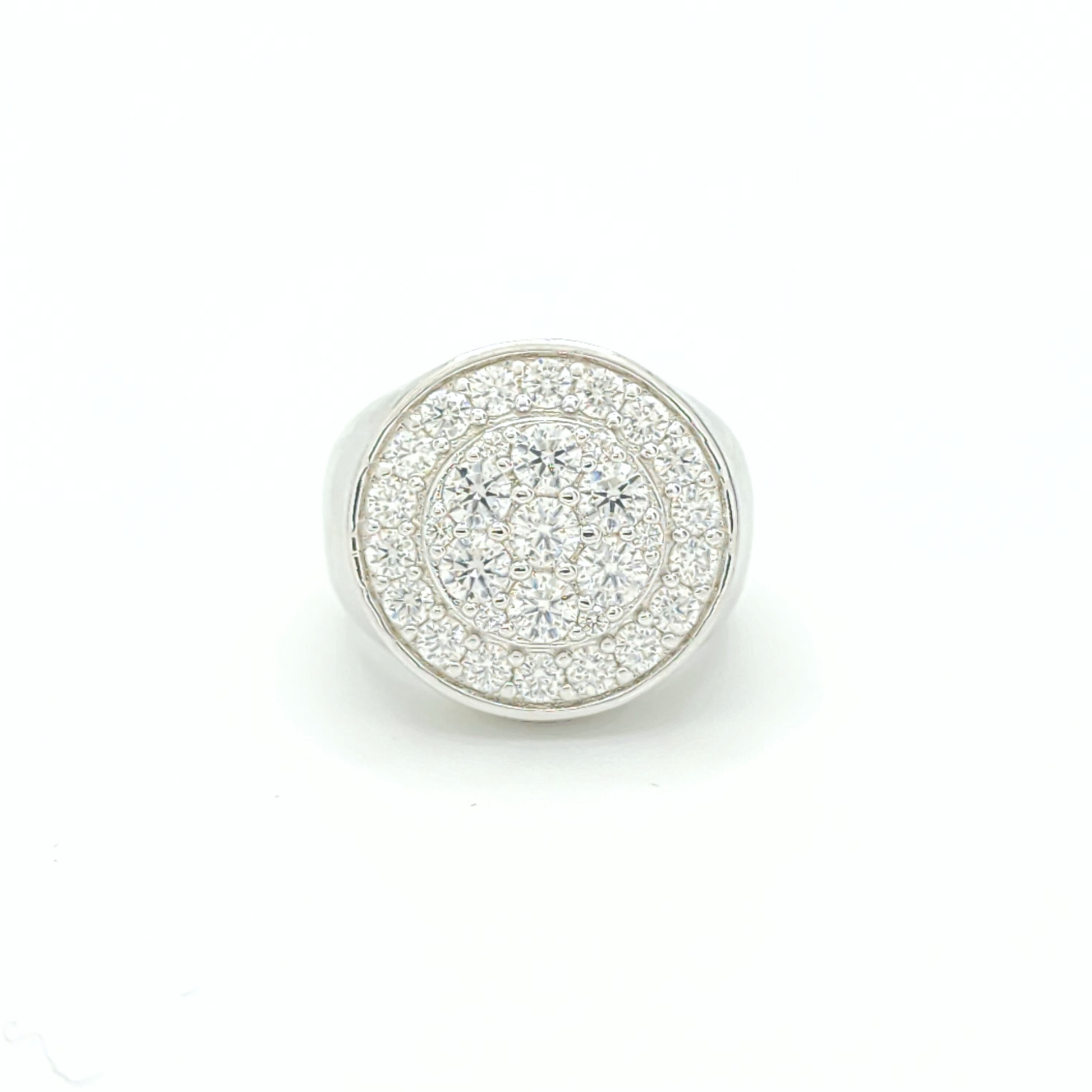 CollJewelry exclusive Moissanite Round Pavé Cluster Ring is now available, made of 925 sterling silver.
