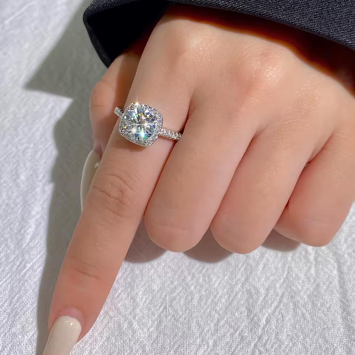 CollJewelry exclusive 3ct Moissanite Engagment Cushion Halo Ring is now available, made of 925 sterling silver.