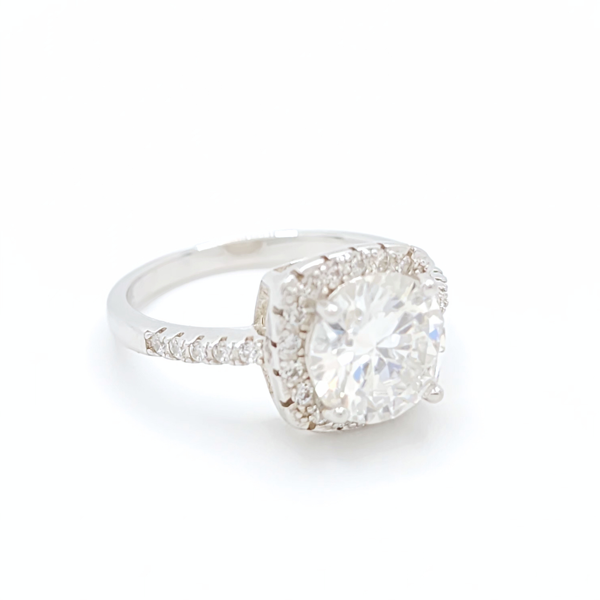 3ct Moissanite Engagement Cushion Halo Ring