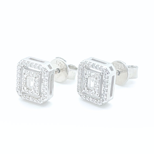 Moissanite Square Earrings Pavé Studs