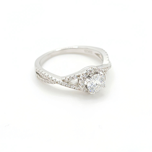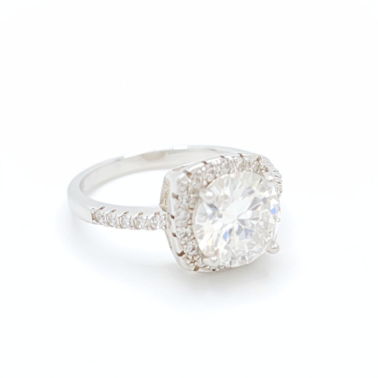 Moissanite Round Engagement Halo Ring