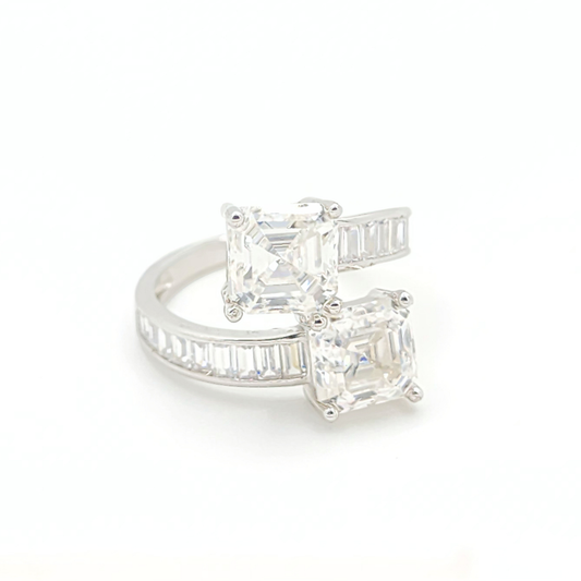 Moissanite Twin Asscher Engagement Ring