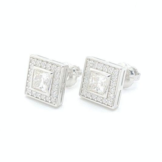 Moissanite Halo Earrings Square Pavé Studs